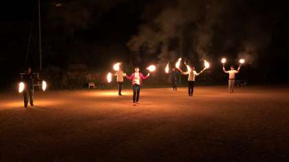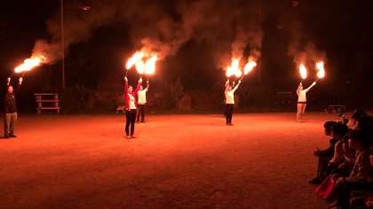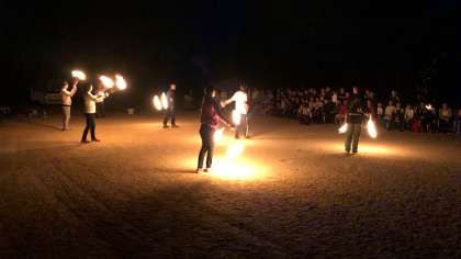 先生方のファイアーダンスがありました。かなりの練習を重ねて今日に至ったようです。子どもたちからは、アンコールが沸き起こるぐらいの素晴らしい出し物でした。