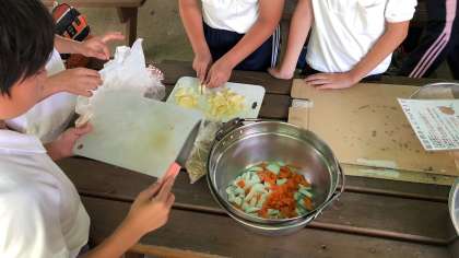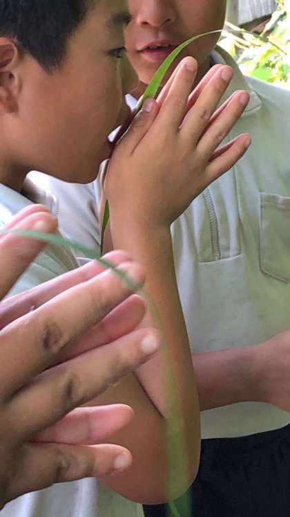 作業の合間に、スタッフの方が草笛を教えてくださいました。