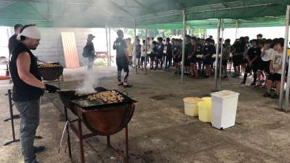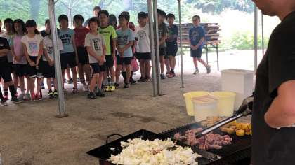 林間学習の最後の夕食は、BBQを皆んなで楽しくいただきました。