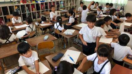 こちらのクラスは、明日が発表の本番で、今日は班で練習しました。