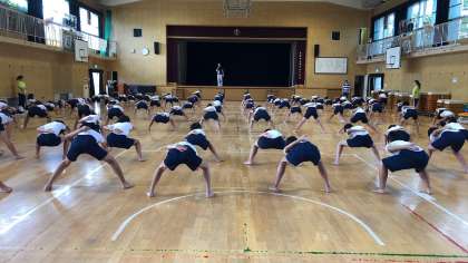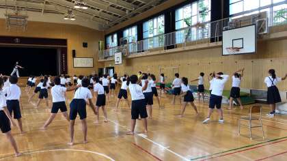 出前授業の2回目で、南中ソーランの後半部分を中心に教えていただきました。