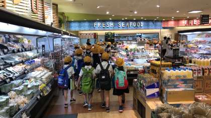 地域にあるスーパーに、社会見学に行きました。普段見れないバックヤードを見せていただいたり、質問をしたりととても勉強になりました。