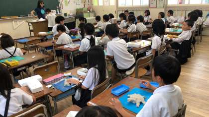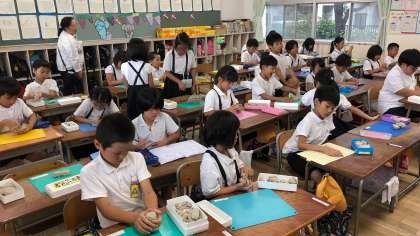 粘土で作った作品を相互に見学し、良いところを発表し合いました。