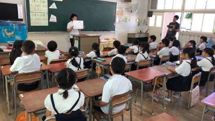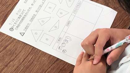 算数科「約束に気をつけて、三角形と四角形をかいたり、作ったりする」ことをめあてに、授業を行いました。