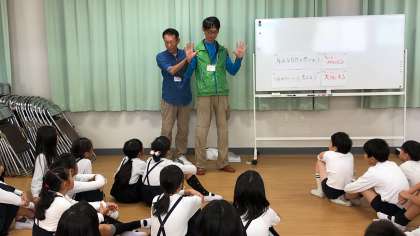 一人がカメラ(目を瞑る)、一人が誘導するという行動をしました。