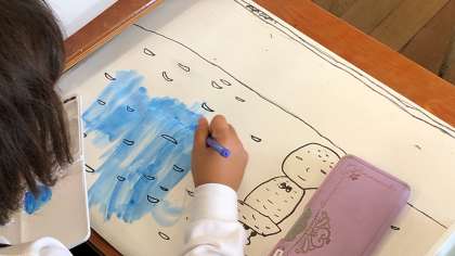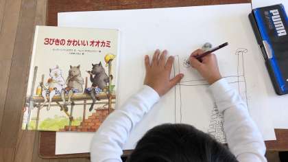 図書室から借りた本から絵を描きました。