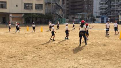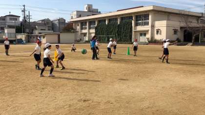 ワンバウンドさせてチーム内で繋げて、相手チームに返すゲームをしました。