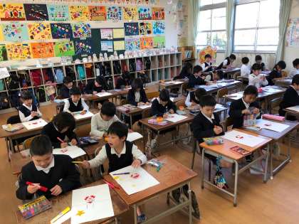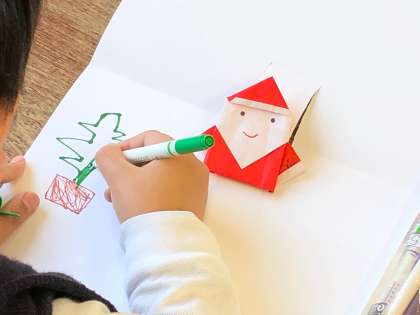 開けるとサンタさんがとびでるクリスマスカードを作りました。