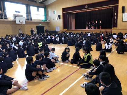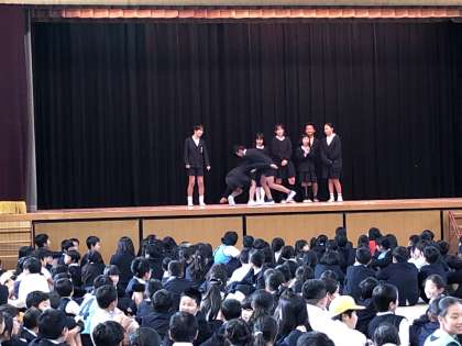 今日は、ジェスチャーゲームをしました。舞台のお友だちが 何をしているのか班で考えました。
