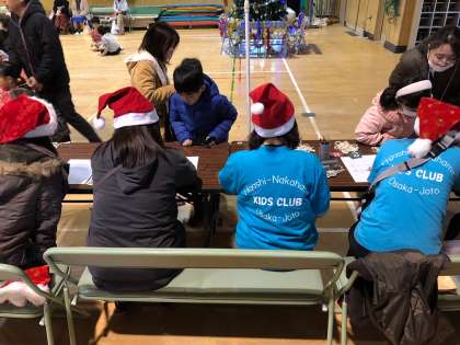 地域子ども会の皆さんが中心になって、クリスマス会が行われました。皆んなで歌を歌ったり、城東中学校演劇部の劇を見たり、ケーキを食べたり、最後はプレゼントをらもらったり、楽しい時間を過ごしました。