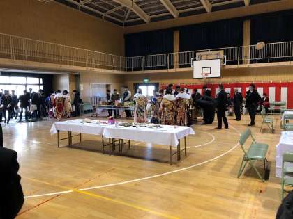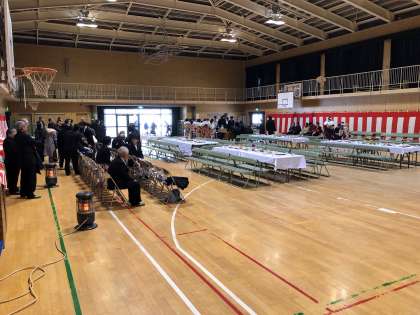 本校で、地域主催の新成人の集いが行われました。そこで、よさこいのチームの子どもたちが、お祝いの踊りを披露しました。