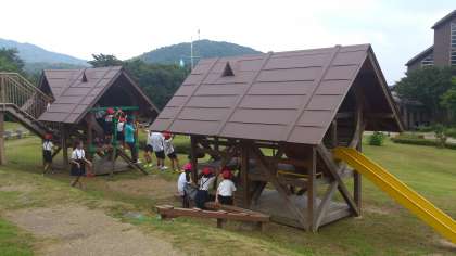 神鍋高原に到着しました。但馬ドーム内で昼食をとり、ドーム前の広場で遊びました。