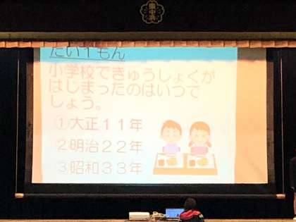 給食週間に合わせて、給食委員会の子どもたちが給食に関する問題を出しました。