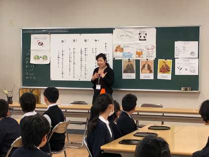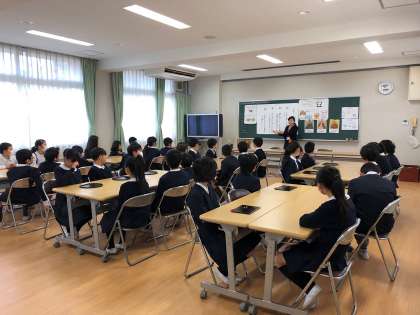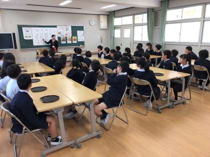 茶道の歴史、心得などを学習した後、お互いにお茶を立てて甘いお菓子をいただきました。