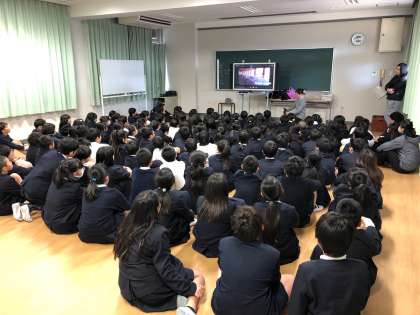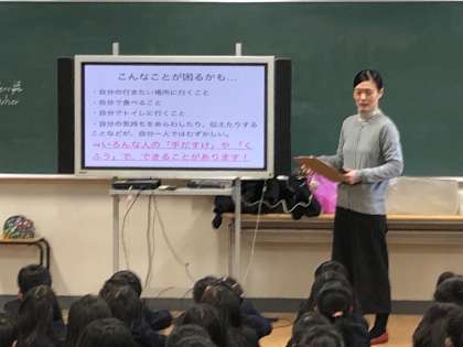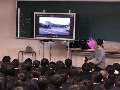 支援学校との交流を行ないました。1時間は支援学校の紹介、その後は、みんなでゲームをしました。