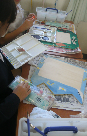 中:5年生「メッセージボード」ひとりひとりのデザインでこしらえています。自分だけの伝言板です。