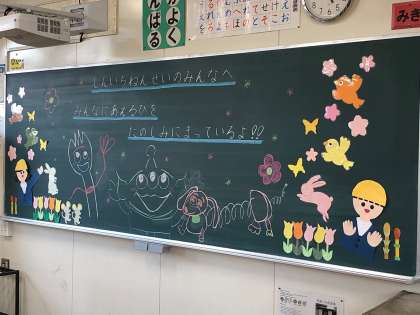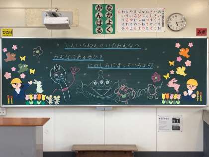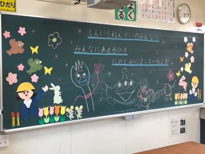 1年生の担任の先生が、黒板に入学へのメッセージを表しました。