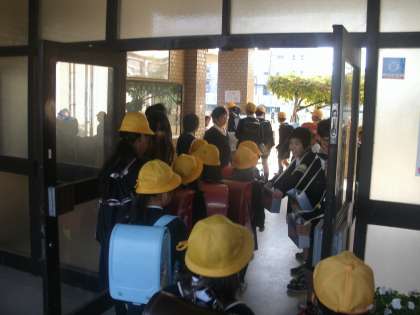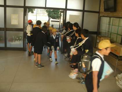 児童会の取り組みで赤い羽根の募金活動。登校時に玄関に児童会の子どもたちが立ちました。これは学校行事の「奉仕的行事」です。19日と20日の取り組みです。