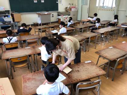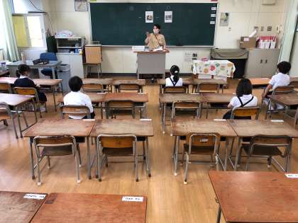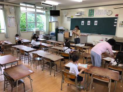 昨日、1年生は、先日の入学にかかるオリエンテーション後、初めての登校日となりました。子どもたちは、担任の先生から上靴への履き替え、トイレの使い方等を教えていただきました。保護者のみなさまには、送り迎えにご協力くださいましたことに、心より感謝申しあげます。今後とも、どうぞよろしくお願いします。
