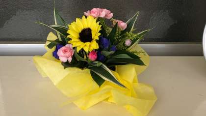 本日の給食と今日また変えていただいたお花です。