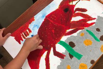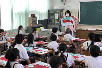お互いの完成したザリガニの絵を見て、感じたことを出し合いました。