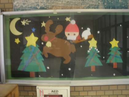 上:玄関掲示・・・掲示委員会のみなさんお力作です。
