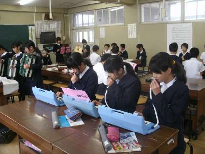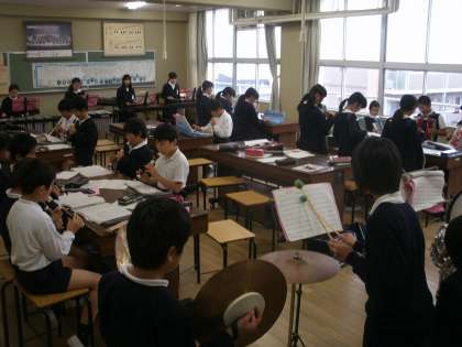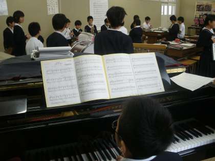 5年生では「アナと雪の女王」の主題歌「ありのままで」を合奏しようと練習しています。みんな一生懸命です。