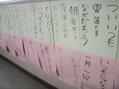 上:6年「連歌を作ろう」お家の方と子どもの作品が上下に貼ってあります。