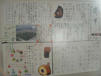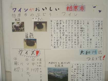 教室の前の廊下の壁に学習で作った掲示物がはってあります。学習発表コーナーです。