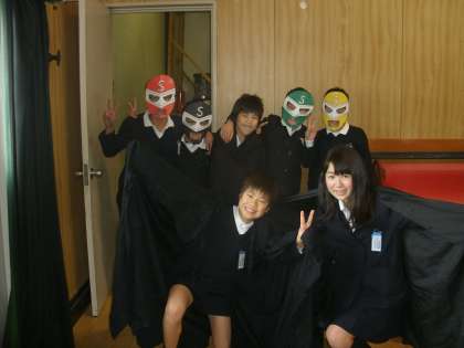 あいさつレンジャー登場。あいさつなんてしないんジャーもあらわれて・・・。児童会のかつやくで、あいさつの声も元気いい朝でした。
