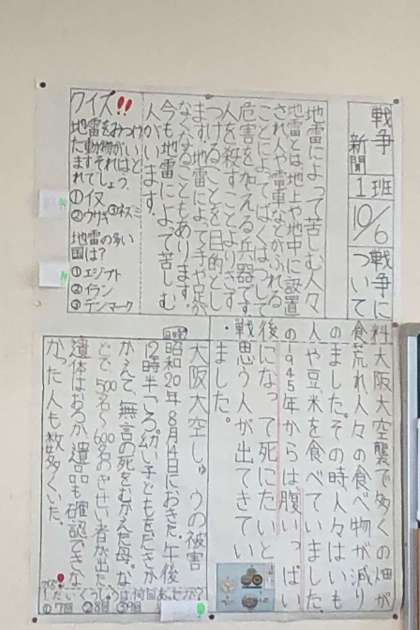 9月16日に、社会見学で行ったピースおおさかにて学習したことを、新聞にまとめました。