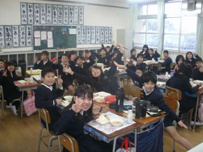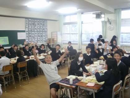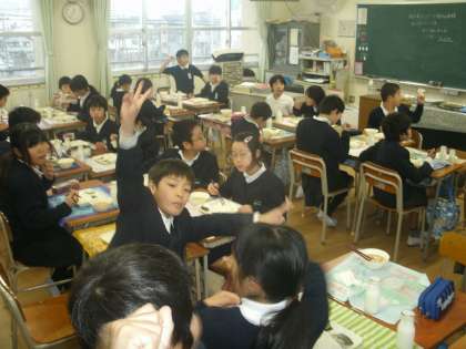 楽しく食事する、にぎやかな5年生です。