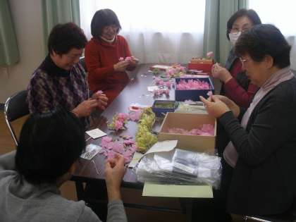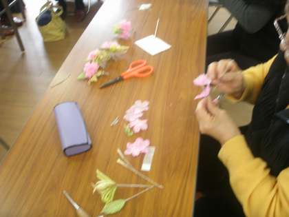 生涯学習ルームと6年生の保護者のみなさんで卒業記念の胸花を作ってくださいました。写真は作ってくださっているところです。どんな花ができたのか、卒業式のころに紹介しましょう。