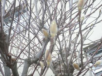 朝、晴れていましたが、午後になって雪が舞いました。まだまだ寒い日もある今日この頃ですが、運動場のもくれんにはつぼみがいっぱいついて、春を迎える用意をしています。(一番下の写真がもくれんの花です。)