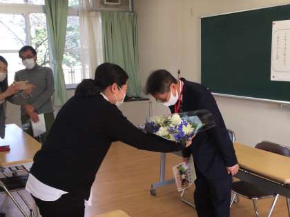 3月末の人事異動に伴い、川北小学校より東川 達宏 新校長先生が東中浜小学校に着任されました。子ども達との着任式の前に、地域、PTAの方々の代表の方との着任式を先日行いました。