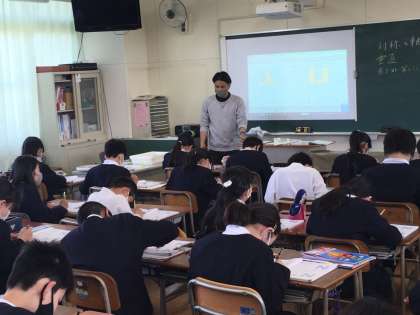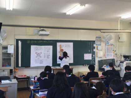 各クラス対称な図形について学習していました。線対称と点対称、どんな特徴があるのか三角定規やコンパスなどを使って調べていました。
