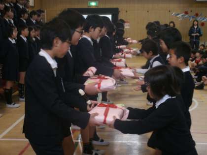 上:6年生から在校生へのプレゼント