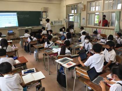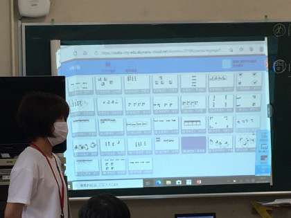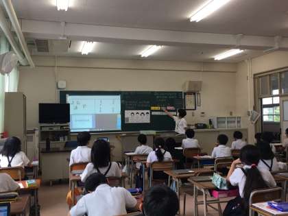 本校では、本年度は算数について研究をしています。7月1日(木)5時間目3年生が研究授業を行いました。割り算の単元の最初の授業です。初めての計算をパソコンを使って考えました。