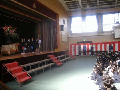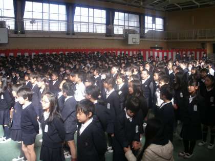 今年度の修了式を体育館で行いました。校歌を斉唱した後、各学年の児童が1年間の感想が読み上げました。みんなしっかりした作文で、はきはきと読めていました。次に、修了証を、代表で5年生が校長先生から受け取りました。新年度に向けてよい春休みになることを期待しています。