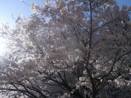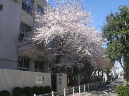このところの暖かさで学校のぐるりを取り巻く桜がずいぶん花開きました。八重桜がこの後を追って咲き始めます。入学式、始業式まで散らずにおくれと願います。