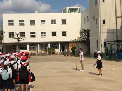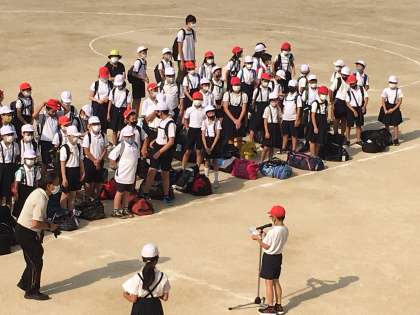 5年生が林間学習に出発しました。新型コロナウイルス感染症対策、熱中症対策を講じて実施します。