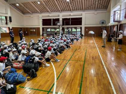 5年生は無事宿舎に到着しました。開舎先をして、これから活動に入ります。
