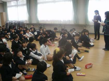 遠足が今週の金曜日にあり、万博公園に行きます。多目的室で説明会をしました。公園の森のようすを展望塔や通路から観察できる「ソラード」をグループで活動します。