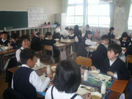 5年1組をたずねました。5年生は、高学年になったという気持ちがそうさせるのか、とてもしっかりときびきびした動きができています。こんだては「豚肉の甘辛焼き」「みそ汁」「じゃこわかめ」。