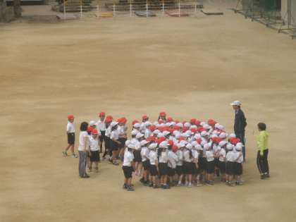 まずは、並び方や遊具のつかいかたです。「鉄棒でぶたのまるやきができるよ」「手にまめができたよ」「のぼりぼう、できるねん」とうれしそうに話してくれました。