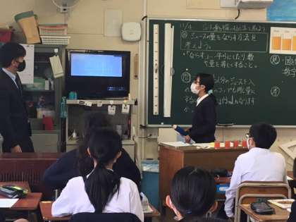 昨日の5時間目に5年生の研究授業を算数科で行いました。平均の求め方について学習しました。本日も教育センターから講師先生に来ていただきご指導いただきました。