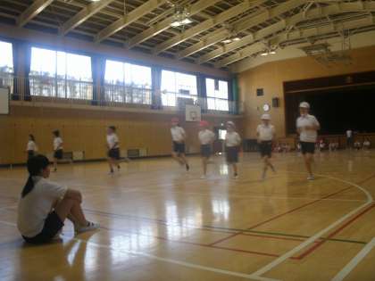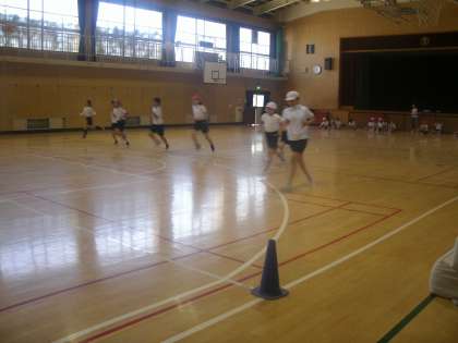 スポーツテストが今日から始まりました。体育館では6年生がシャトルランをしていました。