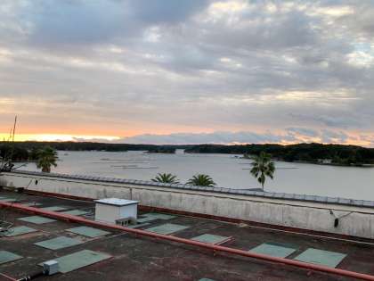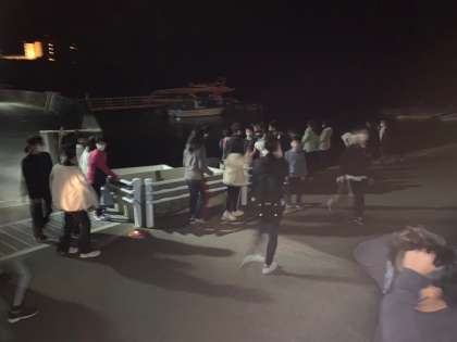 1日目夜の散歩。近くの海沿いまで行きました。散歩の前には少し雨がちらつきましたが、空には多くの星が見えました。2日目の朝は、きれいな朝日を見ることができました。みんなしっかりと睡眠し、体調もよく、素敵な2日目を過ごせそうです。