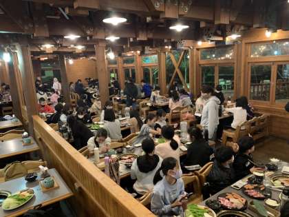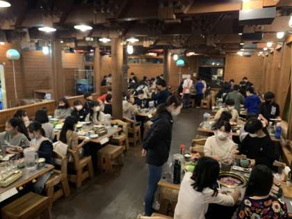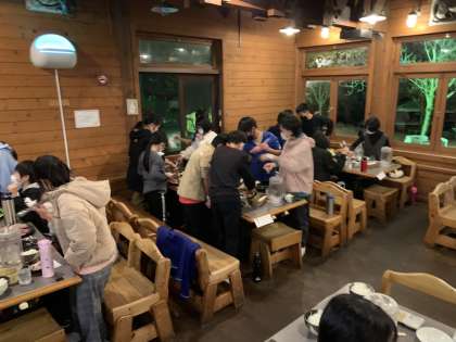 2日目の夕食の様子です。焼き加減に気を付けて楽しく食べています。