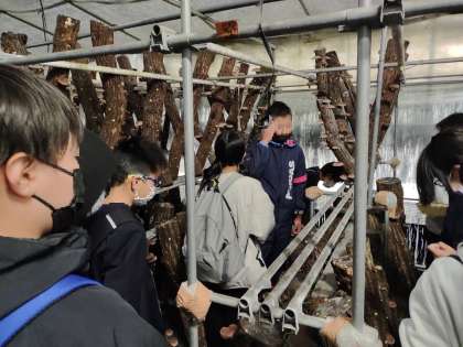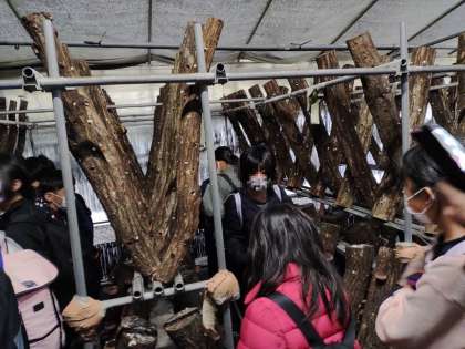 シイタケ園グループでは、シイタケを収穫しました。収穫したシイタケをすぐに調理していただき、ソテーにして朝食でいただきます。
